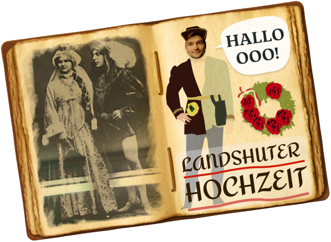 Deine persönliche Erinnerungspostkarte mit den Stars der Landshuter Hochzeit aus den letzten 100 Jahren.