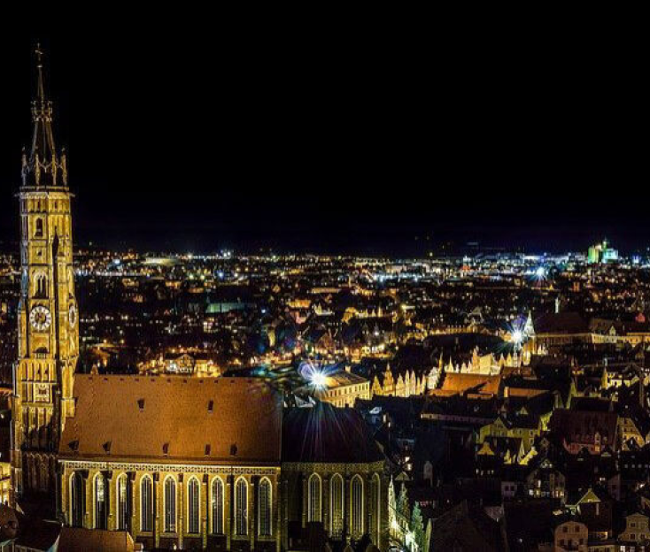 Verschaffe Dir einen Überblick vom höchsten Kirchturm Bayerns - dem weltweit höchsten Backsteinturm - und entdecke spannende Orte der Landshuter Geschichte. Beim Klick auf Punkte im Bild erhältst Du mehr Infos.